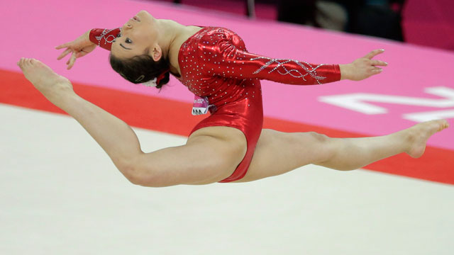 This routine is breathtaking. Just when you think she can't get any better, she pulls a new rabbit out of her gymnastics hat. She has a beautiful combination of powerful, difficult tumbling and exquisite expression.